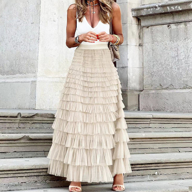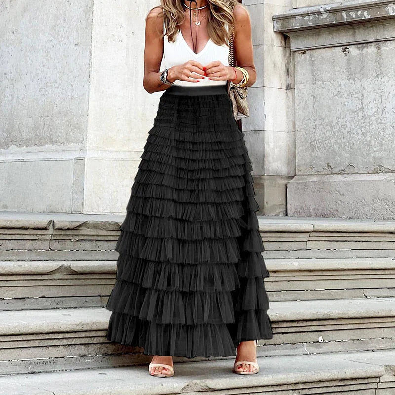 Con su corte vaporoso, esta falda te brinda la libertad de moverte sin restricciones, manteniéndote fresca y cómoda durante todo el día, incluso en los días más calurosos.