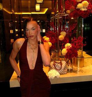 Este vestido ofrece un ajuste regular que te permite moverte con libertad. Su diseño sin espalda y el escote en V profundo añaden un toque de elegancia, haciéndote sentir cómoda y segura en cada paso.